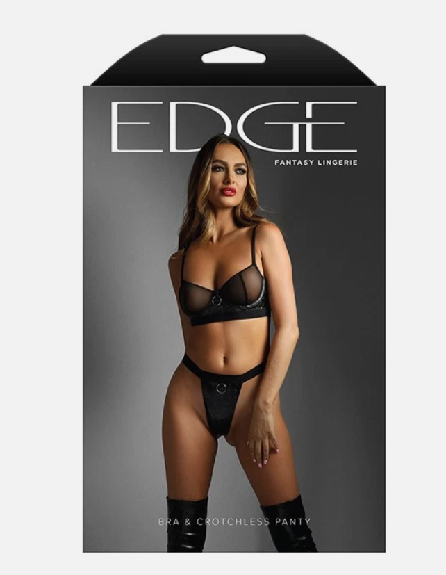 EDGE Quilted Bra & Crotchless Panty – S/M