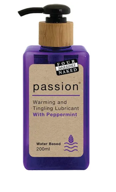 Four Seasons Passion is a long lasting peppermint lubricant which creates a warming and cooling, tingling sensation to heighten your sensual pleasure. Supplements your natural lubrication before or during sex.