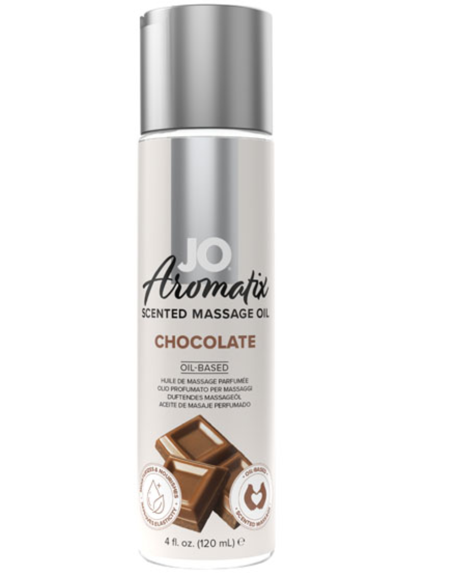 JO Aromatix Massage Oil's unique blend of ingredients can transform any intimate moment into a captivatingly sensual experience. Featuring a combination of skin-nourishing oils and alluring fragrance, Aromatix enhances every touch with a rich, moisturizing glide that's always pleasing – but never greasy. All Aromatix formulas are kissable, elasticity enhancing, and vegan friendly