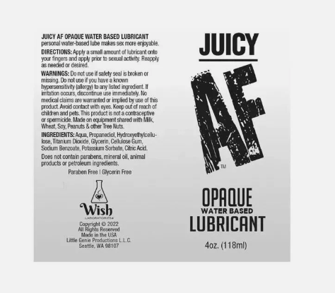 Experience ultimate comfort and pleasure with Juicy AF Water Based Opaque Lube in a convenient 4 oz bottle. This high-quality lubricant is water-based, ensuring a smooth and long-lasting experience. The opaque formula provides discretion while the 4 oz size is perfect for travel or discreet storage. Enjoy enhanced intimacy with this premium lube from Juicy AF.