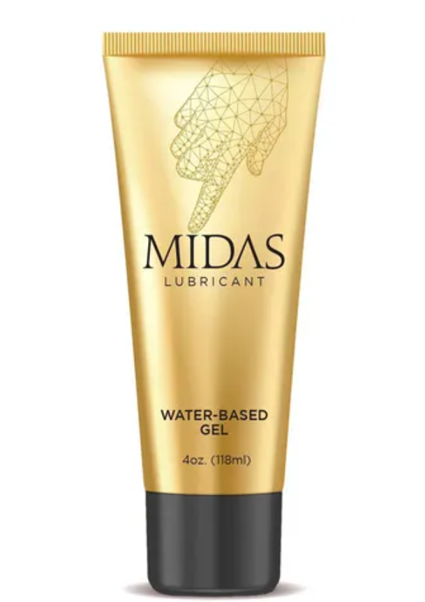 Midas Gel is our stay-put, super slick gel lube formula that glides on like liquid velvet and easily rinses off of skin with water. Delight in feeling every sensation with this lubricating gel that minimises irritation, discomfort and dryness. Midas Gel is great for solo play. Get the Midas touch, the "Gold Standard" of Lubricants.