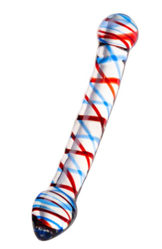 The Sexus Glass Dildo features a sleek and ergonomic design, making it a premium choice for those seeking versatility and elegance. Measuring 20 cm in length, this curved dildo is crafted from high-quality, body-safe borosilicate glass, ensuring durability, smoothness, and ease of cleaning. Its gentle curve is designed to enhance precision and provide targeted stimulation, making it suitable for both G-spot and prostate play. Available in vibrant blue and red color patterned, this unique piece adds a touch of visual appeal to your collection. The hypoallergenic and non-porous material ensures safety and hygiene, while its compatibility with temperature play further enhances the experience.