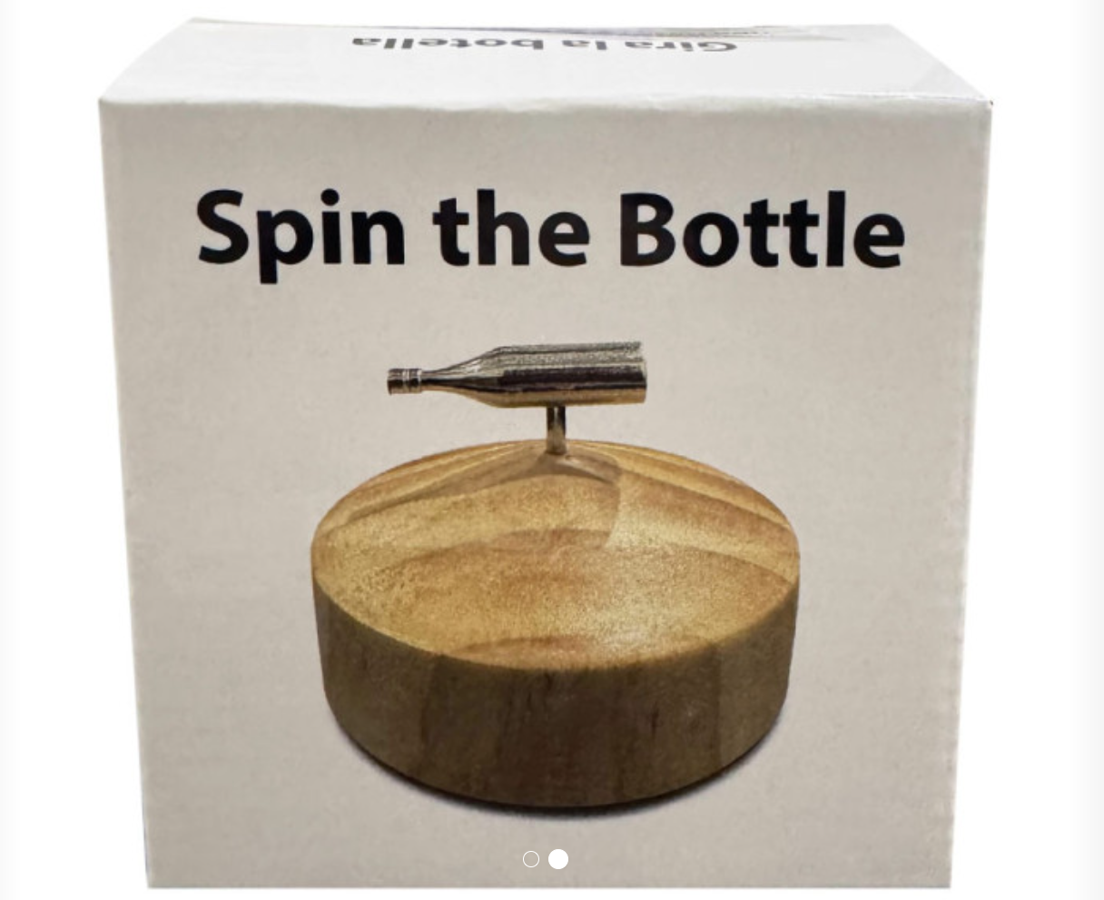 A cute and sturdy metal bottle and wooden spinning base. Play as a kissing game, drinking game or with dares.